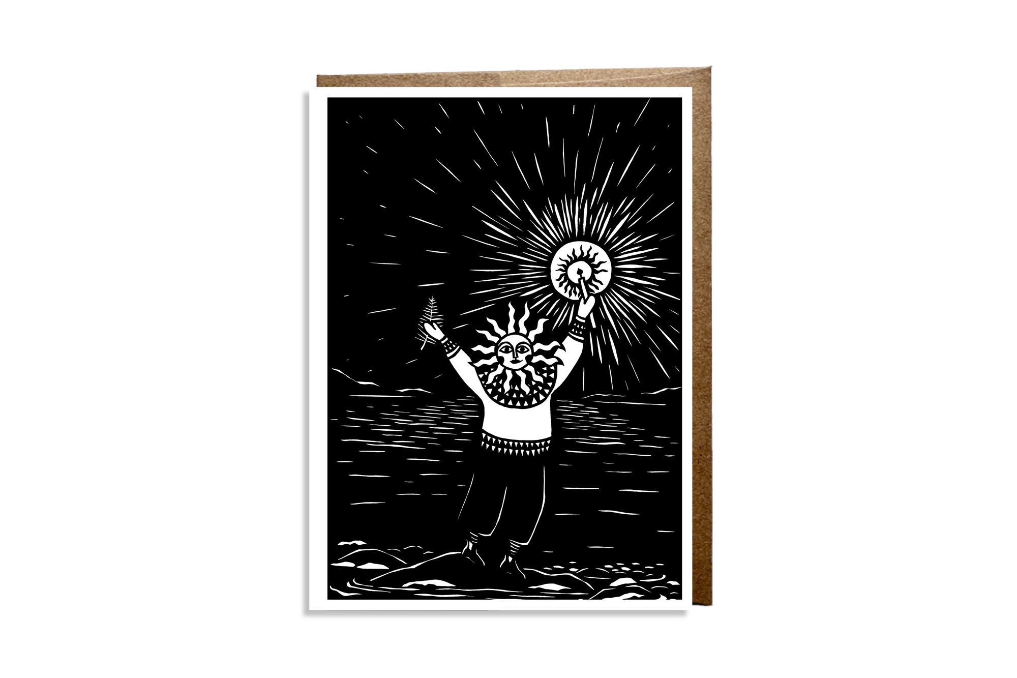 4.5x6.25" greeting card featuring a print of an original papercut. Printed on 100% recycled paper, blank inside, and comes with a brown Kraft envelope.